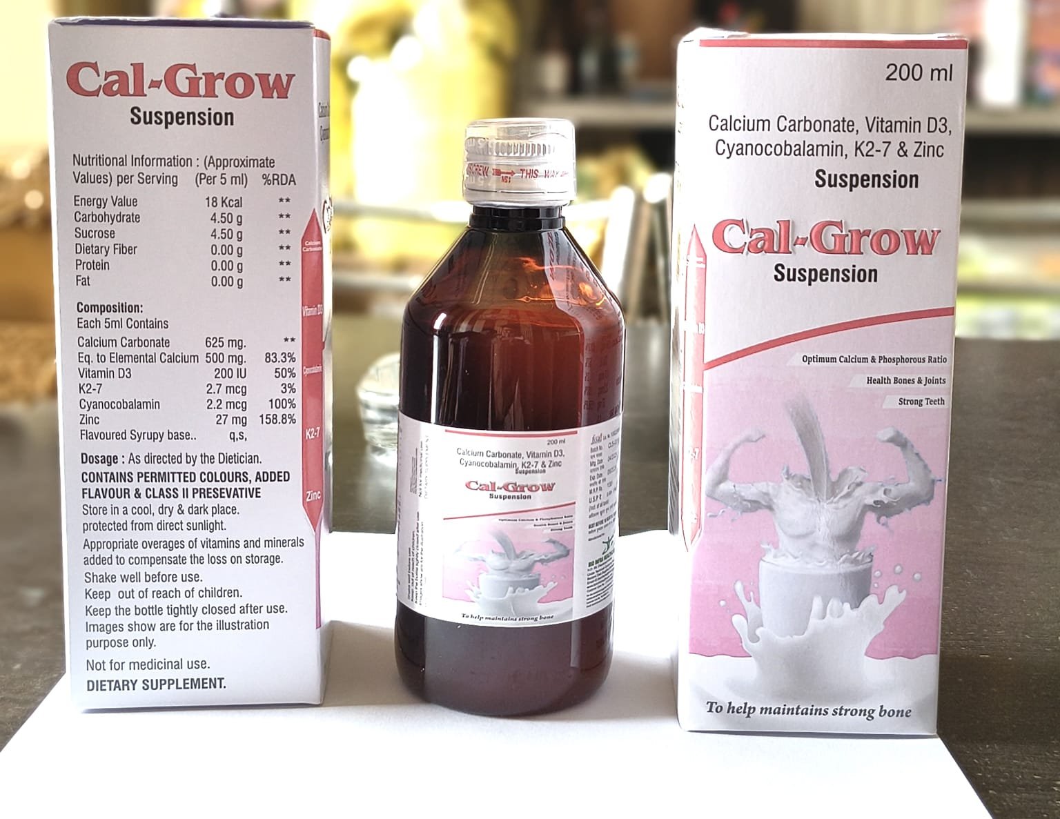 A calcium-rich suspension with Vitamin D3 and Zinc. Strengthens bones and teeth, prevents calcium deficiency, supports children’s growth, and improves joint flexibility and bone health in adults.